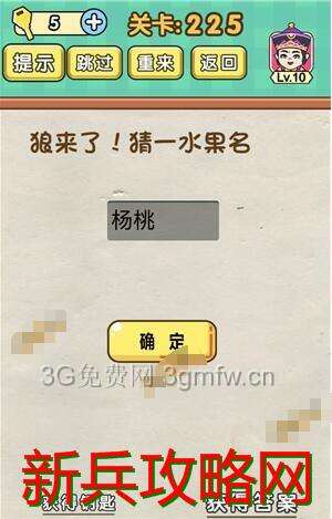 脑力达人全民烧脑游戏第225关【狼来了猜一水果名】怎么过攻略答案,第225关 狼来了猜一水果名 脑力达人全民烧脑游戏