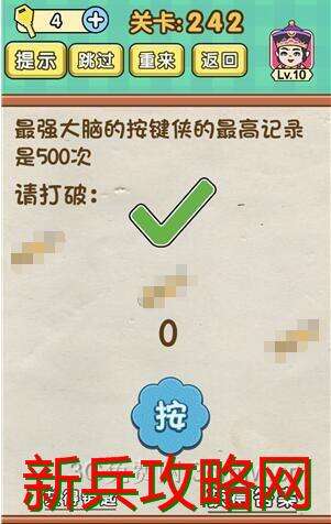 脑力达人全民烧脑游戏第242关【最强大脑的按键侠的最高纪录是500次请打破】怎么过攻略答案