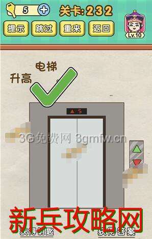 脑力达人全民烧脑游戏第232关【升高电梯】怎么过攻略答案