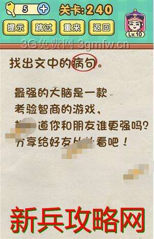 脑力达人全民烧脑游戏第240关【找出文中的病句】怎么过攻略答案,第240关 找出文中的病句 脑力达人全民烧脑游戏