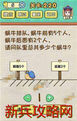脑力达人全民烧脑游戏第220关【请问队里总共多少个蜗牛】怎么过攻略答案