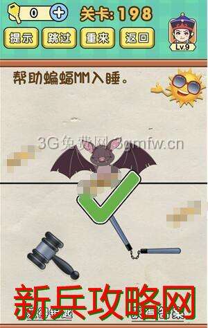 脑力达人全民烧脑游戏第198关【帮助蝙蝠MM入睡】怎么过攻略答案,帮助蝙蝠MM入睡 第198关 脑力达人全民烧脑游戏