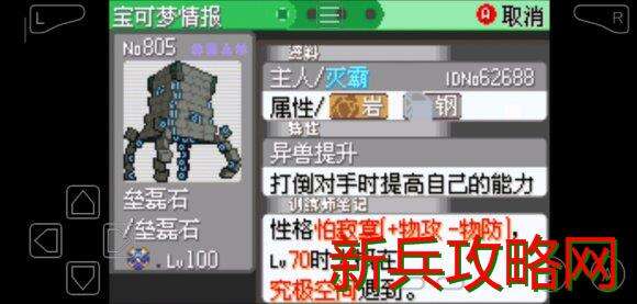 垒磊石想要异兽提升加物攻,必须使用怕寂寞性格,且要求物攻项个体值–物防项个体值>16(考虑到有银冠的存在,只要物防个体小于15就可以)并且速度个体最好尽可能的低,由于垒磊石是异兽只能定点,无法孵蛋,所以想要理想的个体值是比较麻烦的。