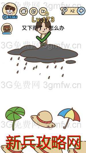 时间:2020-02-08 22:38:00 来源:新兵攻略网 阅读:脑洞大大大第173关【又下雨了怎么办】攻略答案,第173关 脑洞大大大 又下雨了怎么办