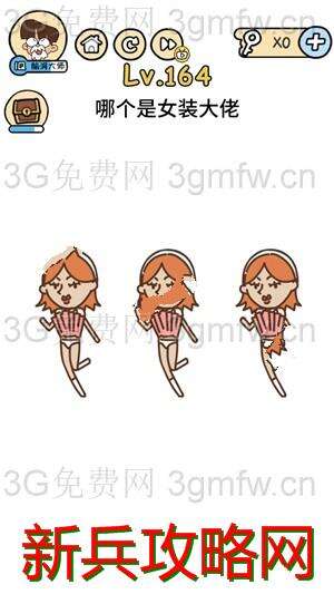 时间:2020-02-08 22:29:00 来源:新兵攻略网 阅读:脑洞大大大第164关【哪个是女装大佬】攻略答案,第164关 脑洞大大大 哪个是女装大佬