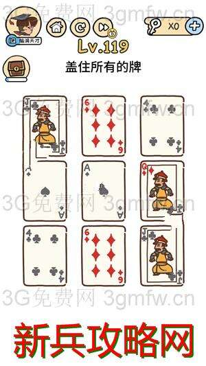 盖住所有的牌是脑洞大大大第119关的问题,很多玩家还不知道第6关怎么过答案是什么,为了让大家快速通关,小编带来了脑洞大大大第119关攻略。