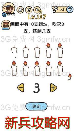 脑洞大大大第117关【画面中有10支蜡烛吹灭3支还剩几支】攻略答案
