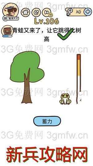 脑洞大大大第106关【青蛙又来了让它跳得比树高】攻略答案,第106关 脑洞大大大 青蛙又来了让它跳得比树高