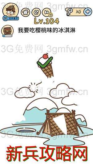 脑洞大大大第104关【我要吃樱桃味的冰淇凌】攻略答案,第104关 脑洞大大大 我要吃樱桃味的冰淇凌