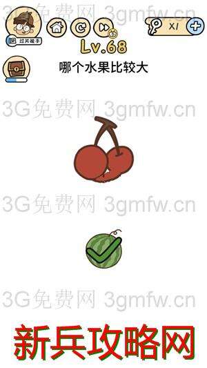 脑洞大大大第68关【哪个水果比较大】攻略答案,第68关 脑洞大大大 哪个水果比较大