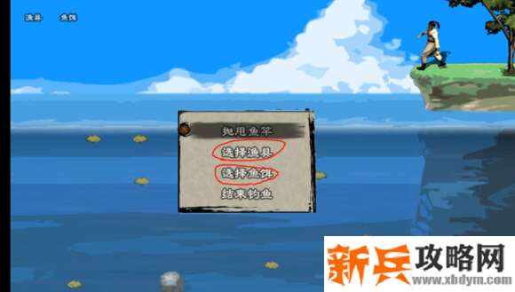 开始觉得这鱼太难钓了,不懂操作,选鱼饵渔具然后在甩鱼竿钓鱼,没钓起来找渔夫在拿鱼饵