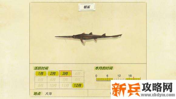 动物森友会《AnimalCrossing》锯鲨/双髻鲨/鲨鱼/鲸鲨/吸盘鱼和翻车鱼怎么钓?