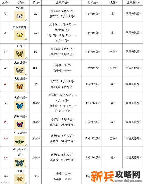 动物森友会《AnimalCrossing》3月南半球虫类图鉴,AnimalCrossing 动物森友会 南半球