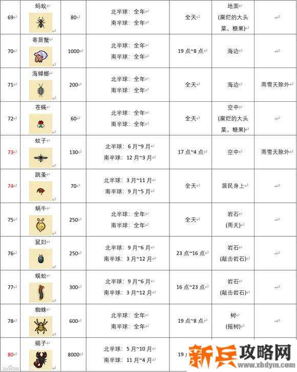 动物森友会《AnimalCrossing》3月南半球虫类图鉴
