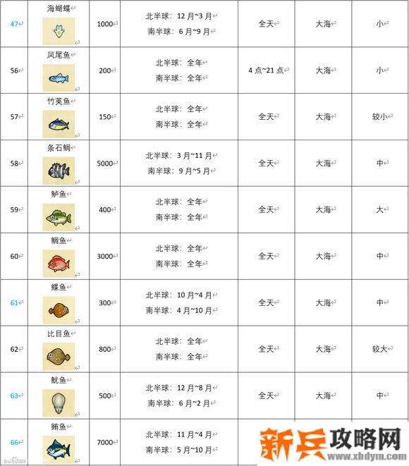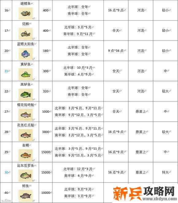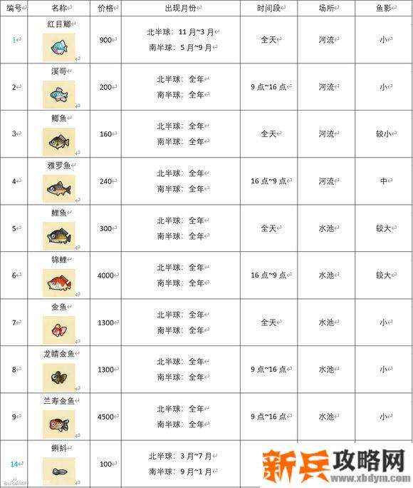 动物森友会《AnimalCrossing》3月北半球鱼类图鉴,北半球 AnimalCrossing 动物森友会