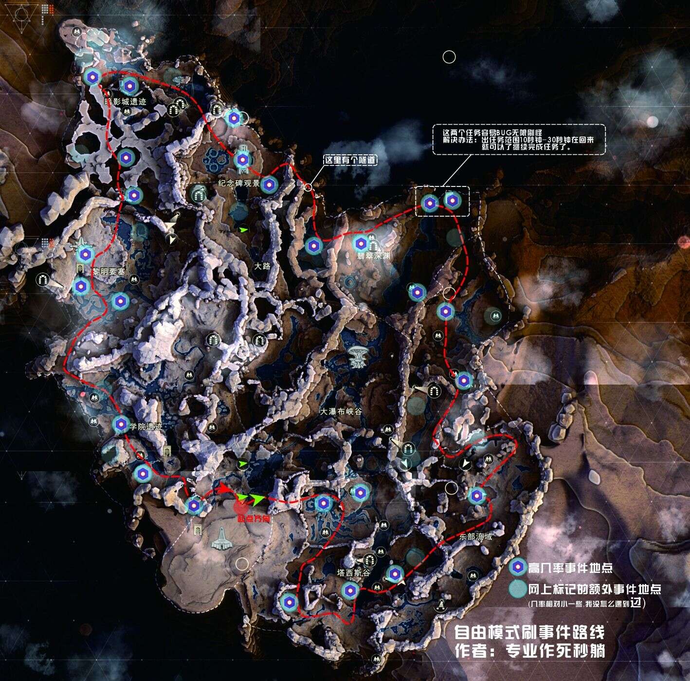 按照路线走的话,大部分会遇到。但是!划重点了啊。自由模式建议组队刷,单人刷的话,可能会被路人打乱节奏(有时候也不会),导致连续好几个点都没有事件。