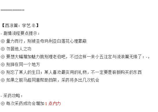 ◎ 三月上旬开始,每次内功修炼成功,内力+1