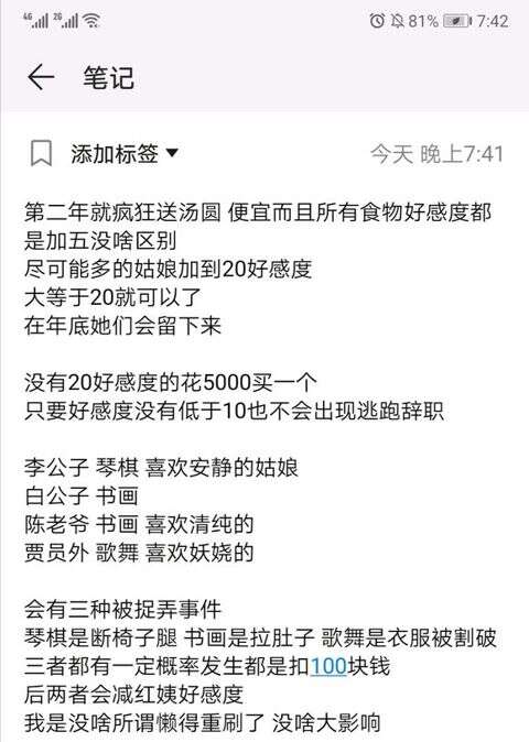 第二年就没有什么特殊剧情啦相对来说好过一点 就刷六艺刷厨艺就好了。