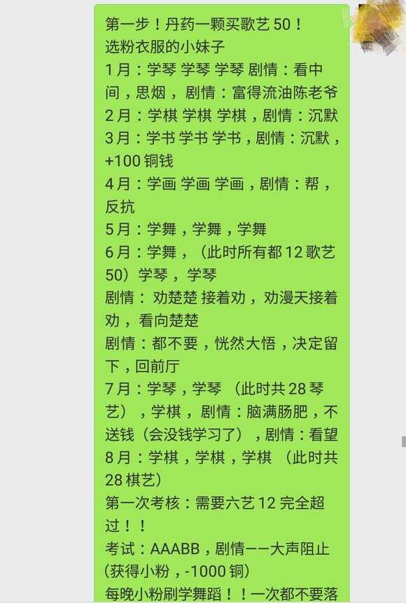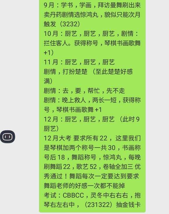 8月小考 六艺需要10 经验值70 红姨好感度满