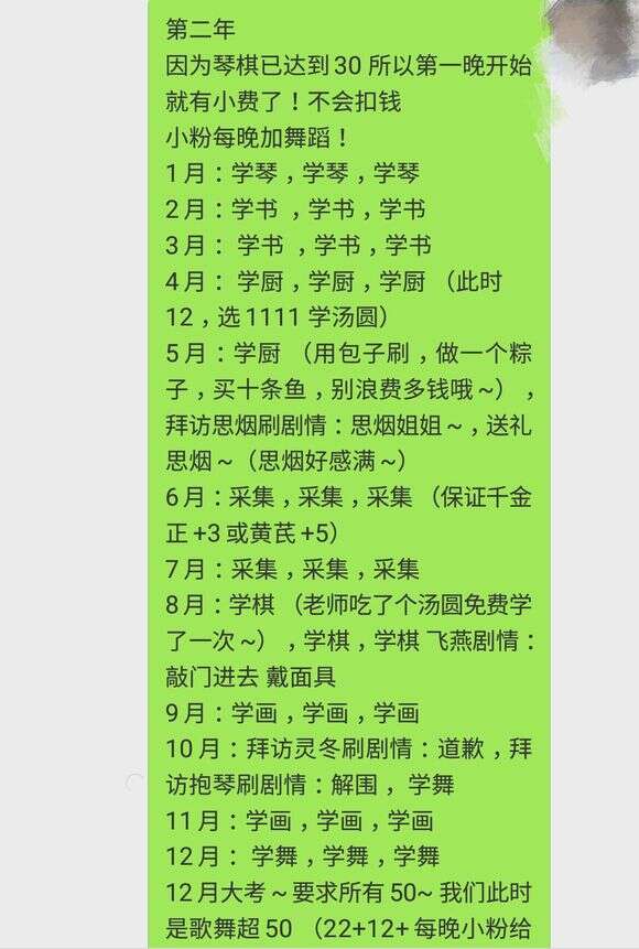 第二年是六艺需要50 并且经验值200.