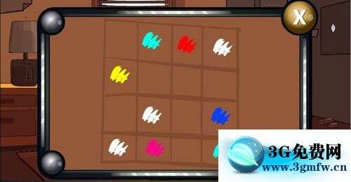 4,图1窗左边彩色格子和图2左边墙上数字格子结合起来看,得颜色提示。