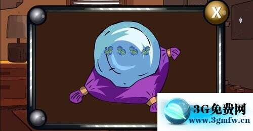 6,图1柜子上的相框后面,调整海马图案,得水晶球,点开水晶球,得蝴蝶提示。观察蝴蝶方向,其实是箭头提示。