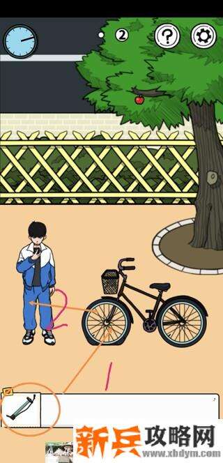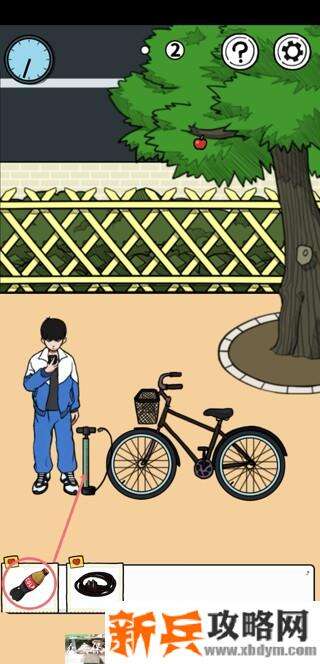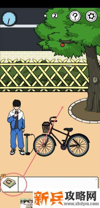 1.打气筒拿到第二页给自行车打气,然后自行车给骚年。
