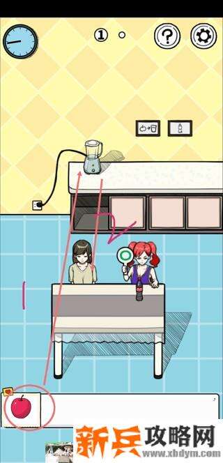 4.摸一下看书小姐姐的胸得到牛顿的书,放在第二页苹果下面,得到苹果。