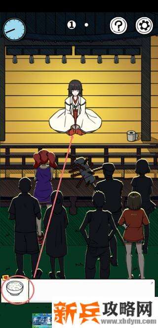 3.第一页红***姐下面有枚硬币,捡起来给第二页用来供奉神明的米饭,得到米饭。