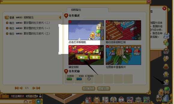 接着,需要照相,按照图上完成以后,需要打开图册看一眼,才能提交任务,记住,要看一眼!
