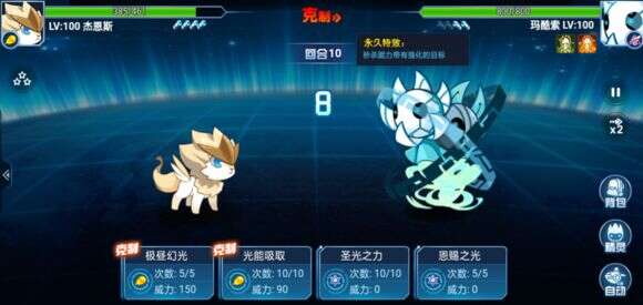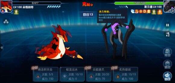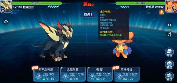 飞超秒诺克林,大招打一下,切鲁斯王克制打死,次元系光系打死玛酷索,送掉,换个有免疫弱化的或者强化加本攻双防的精灵叠强化,在强化等级大于8的时候用大招打