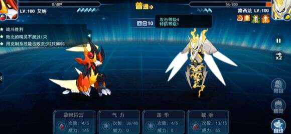 这里卡多拉比较难处理,可以用带先手的草系在钢牙鲨那里强化满,然后大招大招打死钢牙鲨和寒冰之魂,先手打死路西法,卡多拉没有先制,大招打残卡多拉,上个克制系收掉。
