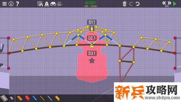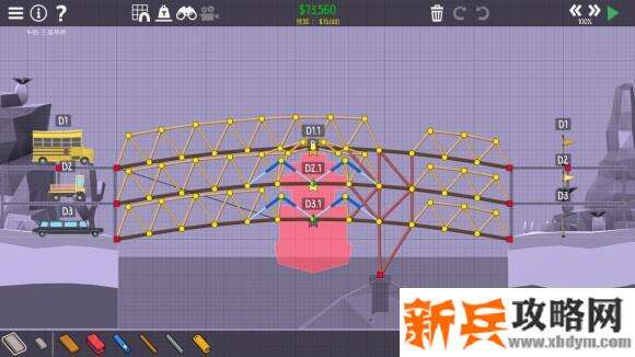 时间:2020-05-31 21:27:00 来源:新兵攻略网 阅读:桥梁建造师2《PolyBridge2》4-5三层吊桥攻略,4-5 桥梁建造师2 PolyBridge2