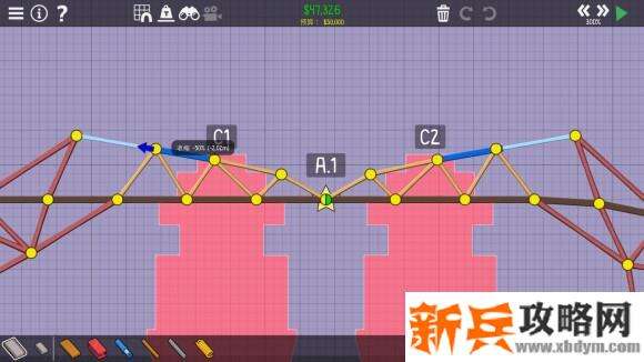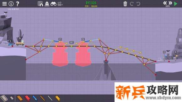 时间:2020-05-31 21:26:00 来源:新兵攻略网 阅读:桥梁建造师2《PolyBridge2》4-3斜度吊桥攻略,4-3 桥梁建造师2 PolyBridge2