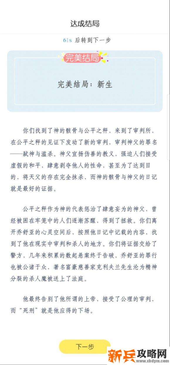 友情提示:得到两具尸骸和公平之秤 才能开启完美结局