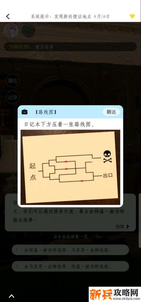 最后在地上找到钥匙 看完笔记 点击地图 开启最后关卡 目前最好选第一个选项