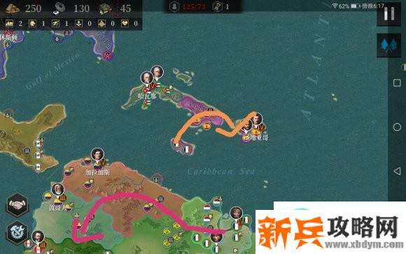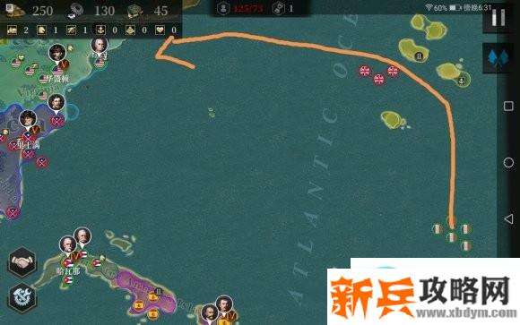 舰队快速打小那三艘船后打下岛屿,然后前往北美协助美国,这里可以上一个海将,西班牙下方的舰队不用管,一般会直接南下打我们的根据地,至于后面出现的英军舰队支援,可防可不防,稍后再解释