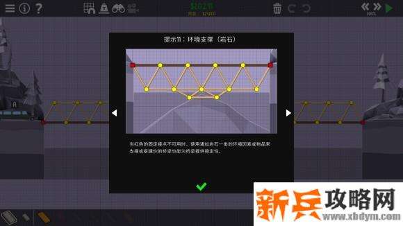 时间:2020-05-31 10:34:00 来源:新兵攻略网 阅读:桥梁建造师2《PolyBridge2》1-12岩石支撑攻略,1-12 桥梁建造师2 PolyBridge2 岩石支撑