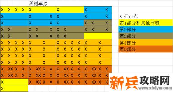 本关难度很低,很多大佬甚至认为它比寒冬简单。本关共有4种基本节奏,只要掌握这4种节奏,通关就没什么问题了。对于4种节奏我专门做了一个彩色表格方便查看。