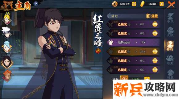 点开主角,然后点到修行栏。主角的基础战斗力只和他们的修行有关,和他们刷的修行属性无关,一般和他们橙色和紫色数量有关,所以这里我们选择主角的时候尽量紫色和橙色多的主角,如果有几个主角不好分辨,可以来回切换一下,看一下战力变化,如果有几个主角基础战力都是最高,那随便上一个就可以了,这里我的水主和火主基础战力一样,我就随便上了一个。
