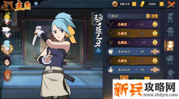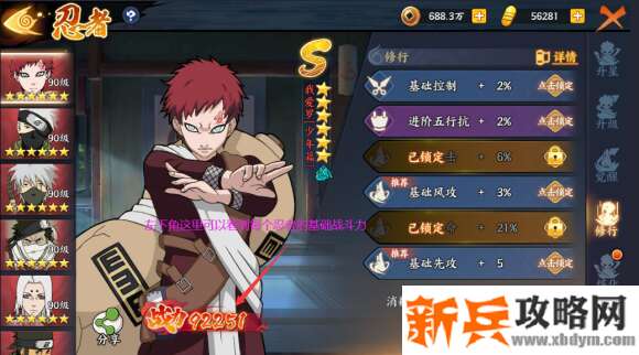 点开忍者,然后点修行,然后可以发现左下角可以看到每个忍者的基础战斗力,这里我要说一下忍者的基础战斗力为什么差别那么大,因为忍者的基础战斗力不仅和修行有关,同时和他们的星级,等级,觉醒等级有关,所以你们那些等级低和觉醒等级低的忍者基础战力一般不会很高。然后大家对比一下自己的忍者然后挑选出三个基础战斗力最高的忍者上场就可以了