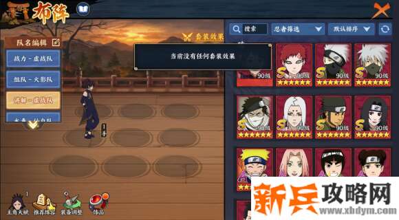 找一个不需要的阵容,将之前上场的忍者全部下了,然后将各手位饰品全下了。只留一个主角就可以