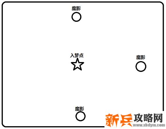 大致的位置如下图,注意,全程以入梦点当做场地中心,躲技能和输出,都围绕这入梦点来操作(具体的入梦点,进队指挥都会帮你标好的,一般不用管)。