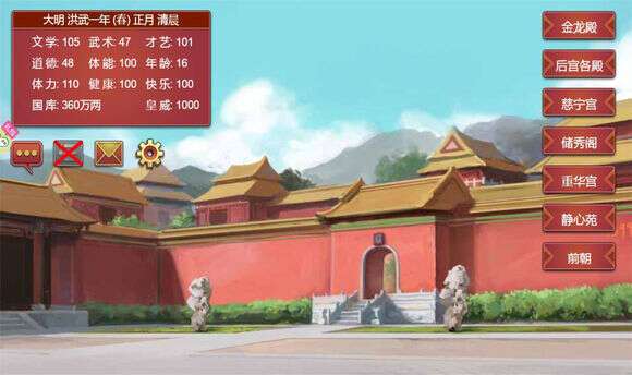 重华宫:皇子和公主住的地方,由于刚更新了皇子的教育、历练系统,我还没接触,没办法细说