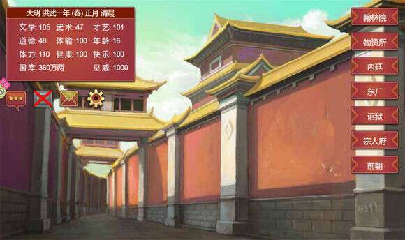 慈宁宫:拜访太后加道德,在晌午时间来后宫有概率遇到妃子邀请和你一同前去看望太后,每次加8点道德。后期太后卧病在床就看不了了。