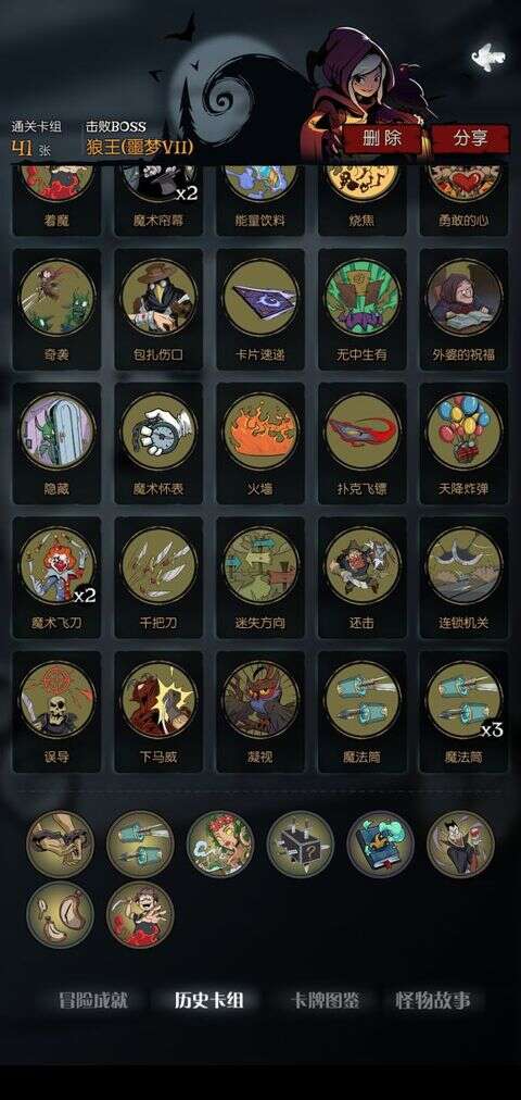通关思路:反制是个好东西,又能减费又能保命,甚至还能输出!连锁机关+古怪符文输出也是很爆炸的,但我们这套牌主要的思路就是先出反制减费过牌,然后再上BUFF准备输出(反制兔子+风暴攻击你是有多丧心病狂),最后请开始你的表演,扑克飞镖+鬼牌扑克飞镖丢丢丢,费用高了就清零继续丢丢丢,你说鬼牌给扑克终结技?没必要,有什么比丢丢丢更开心的呢?boss撑不到必杀扑克上场的,1500+输出的魔术师哪个boss能hold得住啊?没图没真相?