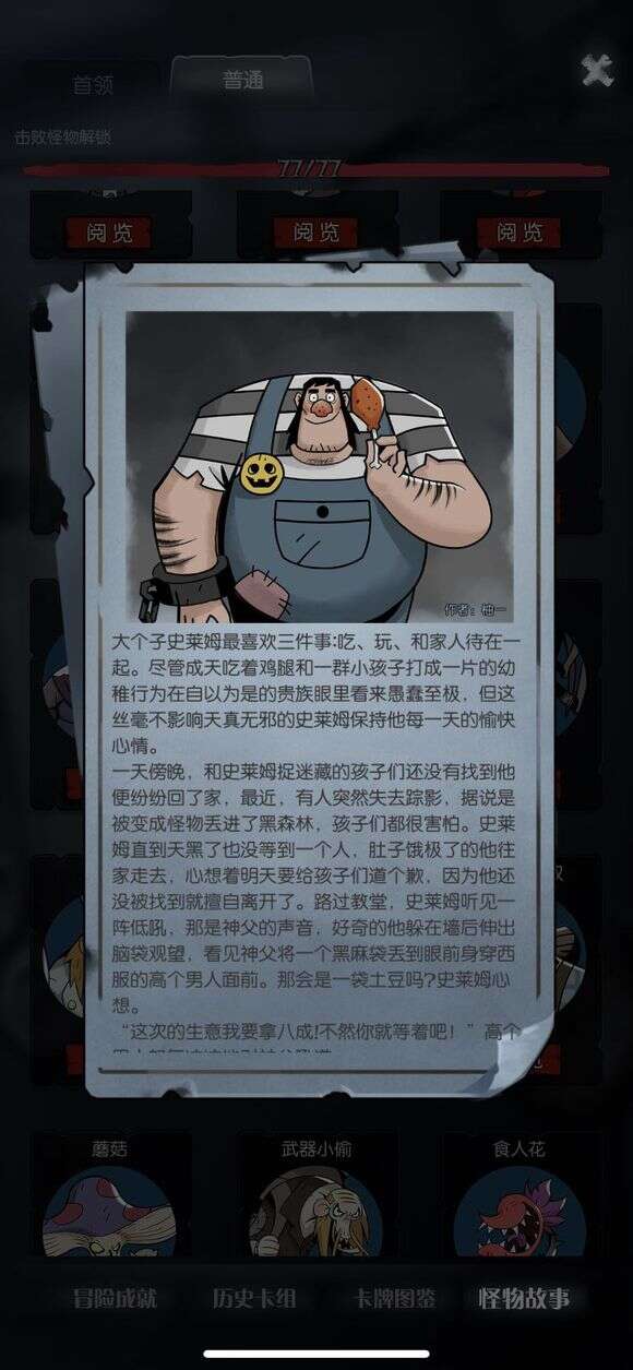 建议打法:怪物等级大概在lv1-lv3之间。有一张行动牌【吞噬】查看敌方牌组3张牌,移除1张。除此之外基本只会普通攻击,由于有回血能力,要多撸几下,就直接撸吧。