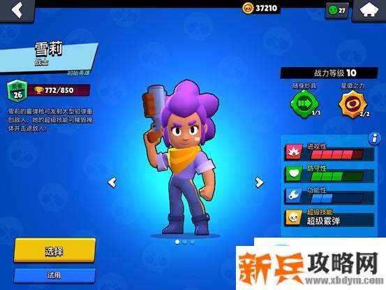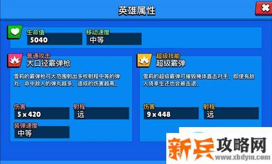 雪莉是游戏开始每个玩家第一个接触到的英雄,是一名英勇的女战士,手握霰弹枪射程不俗,擅长近距离与敌人作战,超级技能能够摧毁墙体,使得墙后敌人无处可逃。