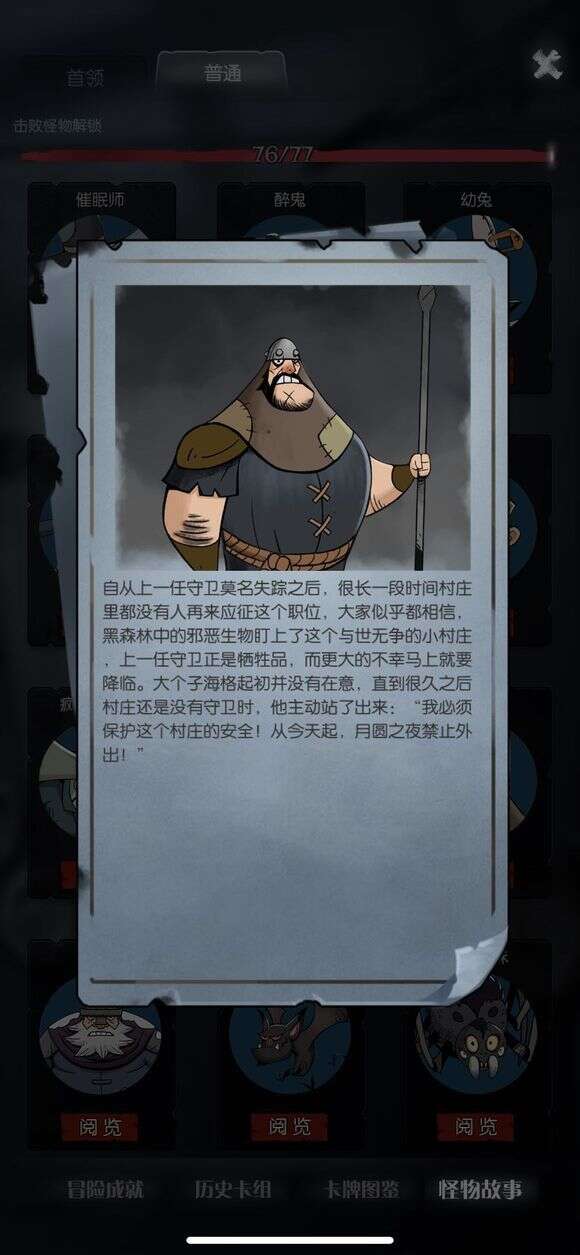 建议打法:怪物等级大概在lv1-lv3之间,自带一把【短剑】,卡组里面可能还有【短剑】,所以有时候会遇到装备两把的情况,有一张特殊牌【禁止通行】无效下一张卡牌,获得4点护甲。也没啥特殊的,就当他多了4点血,无效的话,用一张1点伤害的【普通攻击】骗掉,直接撸。