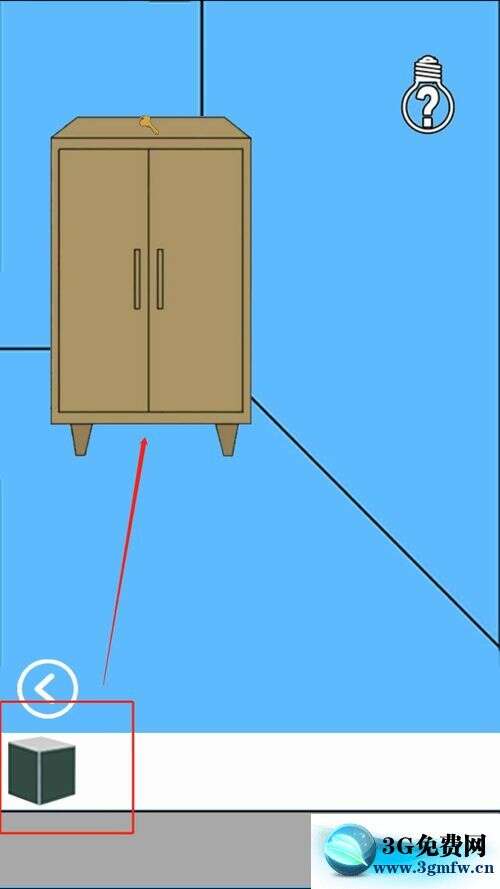 点击黑板上的正方体,把正方体放在第二页的柜子旁边,获得钥匙,用钥匙开门